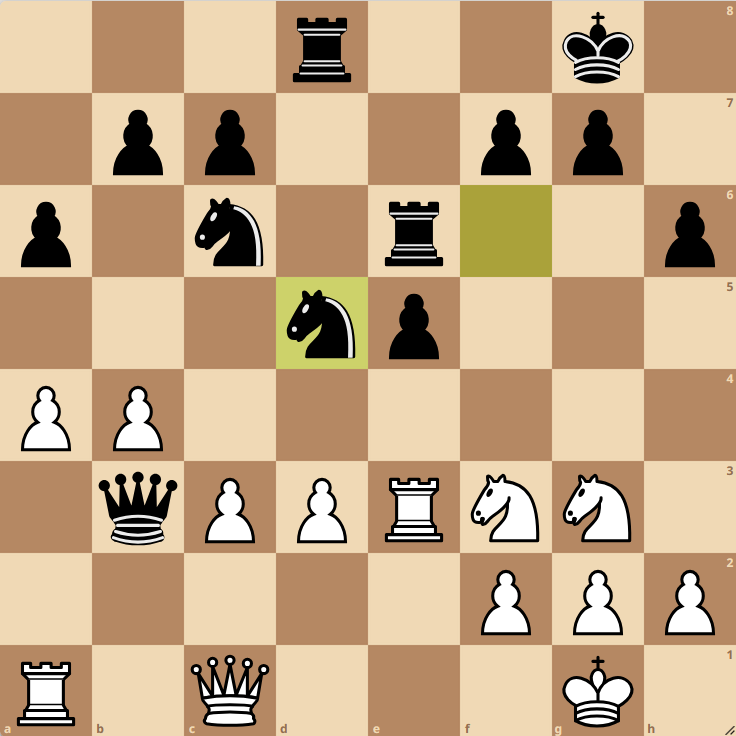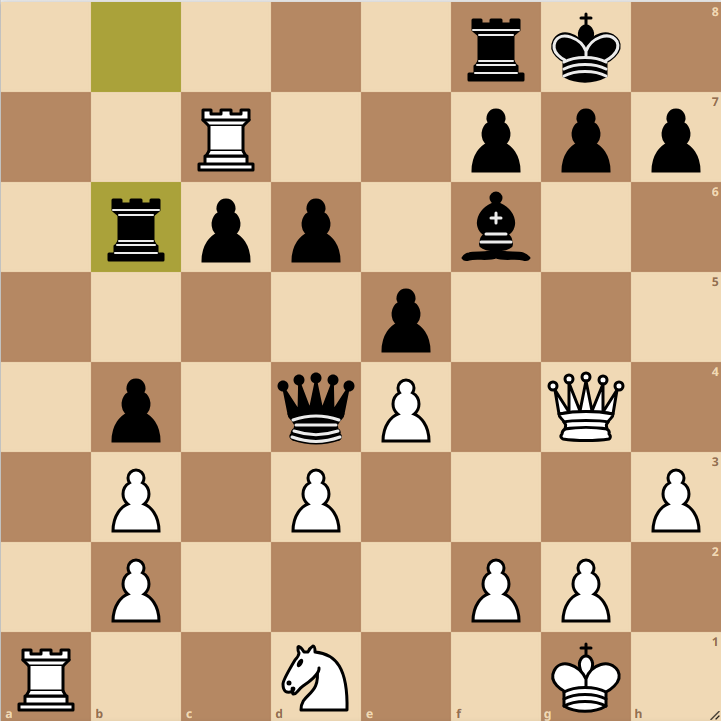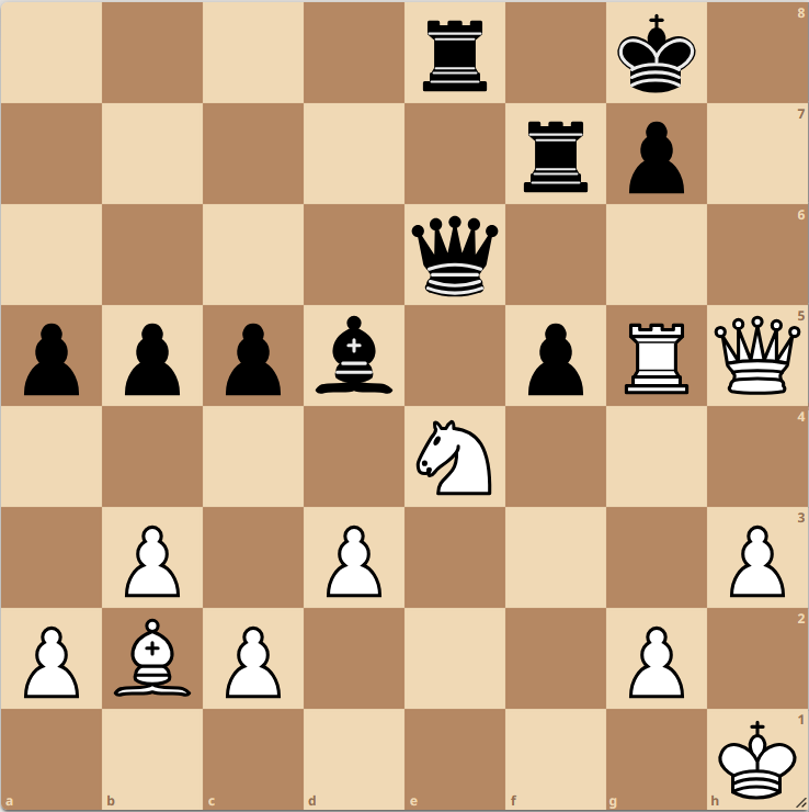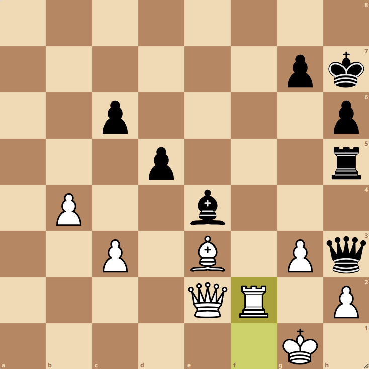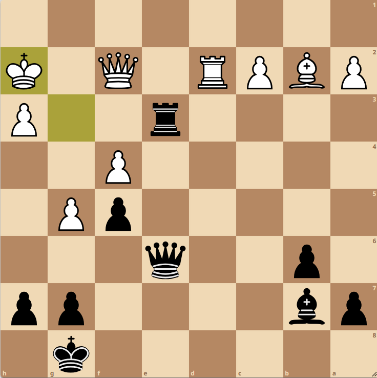 Brett 5: 44…Dxg3 und die Dame kann wegen Matt auf h1 nicht geschlagen werden