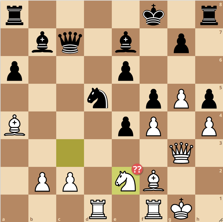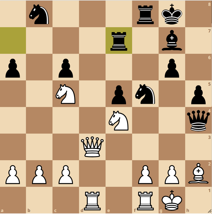 Bei mir entstand ein Najdorf-Sizilianer mit Scheveningen-Struktur bei der ich am Anfang mit einer gute Version der Dinge davon gekommen bin. Nach unpräzisem Spiel verlor ich den entscheidenden Zentrumsbauern auf e4 und folglich meine Initiative. Bei so langsam schwindender Bedenkzeit beider Seiten (jedoch mehr als genug, damit einer der beiden Spieler den Fehler sieht) versuchte ich mit einer aktiven Drohung Gegenspiel zu kreiieren, jedoch entging beiden Spielern in komplizierter Stellung ein Doppelangriff mit Dame auf zwei ungedeckte Leichtfiguren à la Stappenmethode Stufe 2. Wie es für den Najdorf typisch ist, hat jeder Zug, jedes Tempo einen hohen Preis und nach zwei passiveren Zügen von Schwarz bekam ich eine schwer aufzuhaltende Initiative, welche im weiteren Verlauf eine Mehrfigur einkassierte. 3-1
