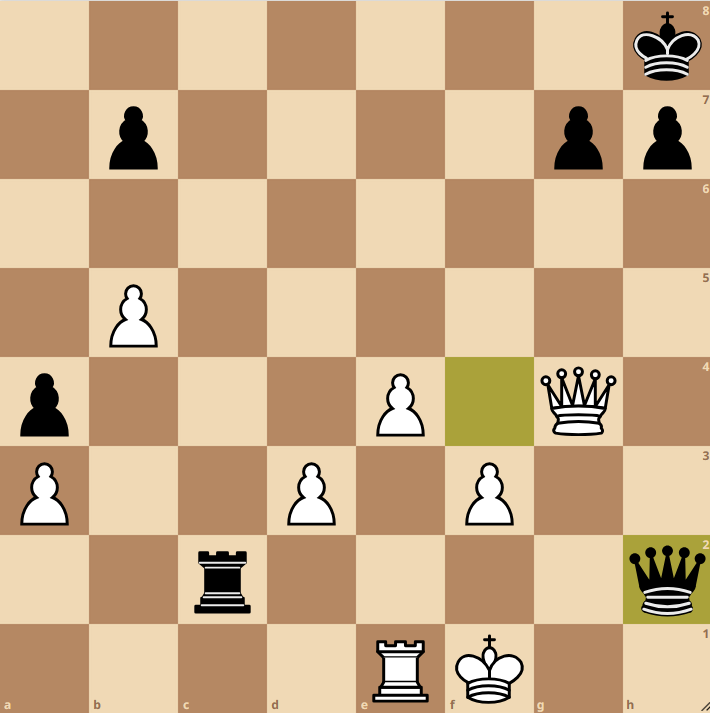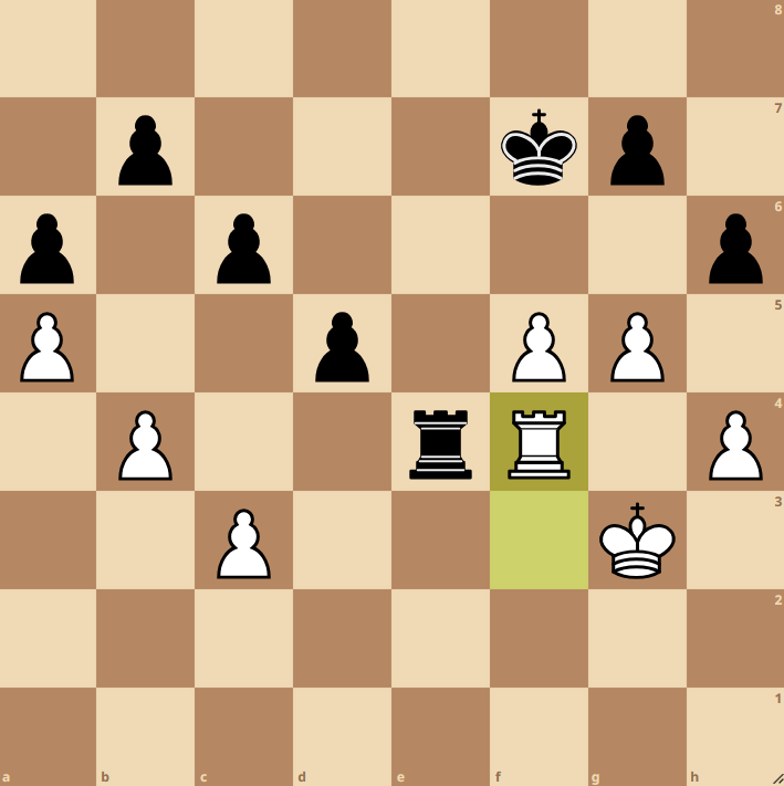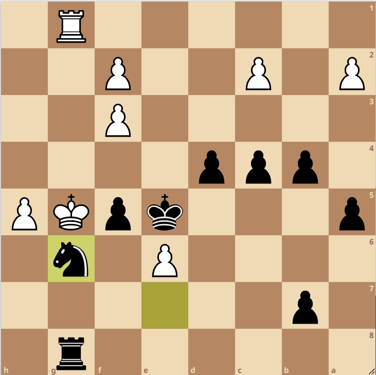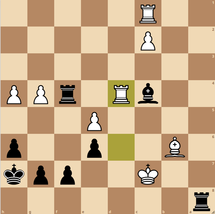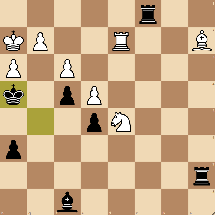 Nun lag es an Vadim, der im Schottischen Endspiel mit Turm und zwei Zentrums-Bauern gegen Springer und Läufer seine Chancen suchte. Nachdem der Damenflügel für den Moment eher festgelegt war, öffnete sich die Stellung ein wenig am Königsflügel. Sein junger Gegner wollte dabei Vadims Bauern auf d5 für den auf h2 abtauschen, jedoch wurde als Folge der schwarze Turm aktiv. Vadim erhielt zwei Freibauern am Damenflügel und wie wir es von ihm gewohnt sind, hat Vadim, als es hart auf hart kam, den vollen Punkt eingefahren 4-4.
