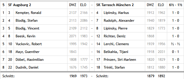 Zum ersten Spieltag in der Regionalliga Süd-West durften wir die 2. Mannschaft des SK Tarrasch München begrüßen. Zwar trat das Team nominell ersatzgeschwächt an, doch war es mit einigen talentierten Jugendlichen gespickt – und somit keineswegs zu unterschätzen.