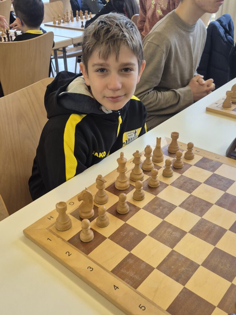 Bei der diesjährigen Offenen Schwäbischen Jugend-Schnellschachmeisterschaft, ausgerichtet vom SK Kriegshaber, waren wir wie mittlerweile üblich so stark vertreten wie kein anderer Verein: 14 der 48 Teilnehmerinnen und Teilnehmer kamen aus unseren Reihen. Schon dieser beeindruckende Anteil sorgte dafür, dass im Turnierverlauf zahlreiche vereinsinterne Duelle unvermeidlich waren – alle wurden sportlich fair und mit viel gegenseitigem Respekt ausgetragen.