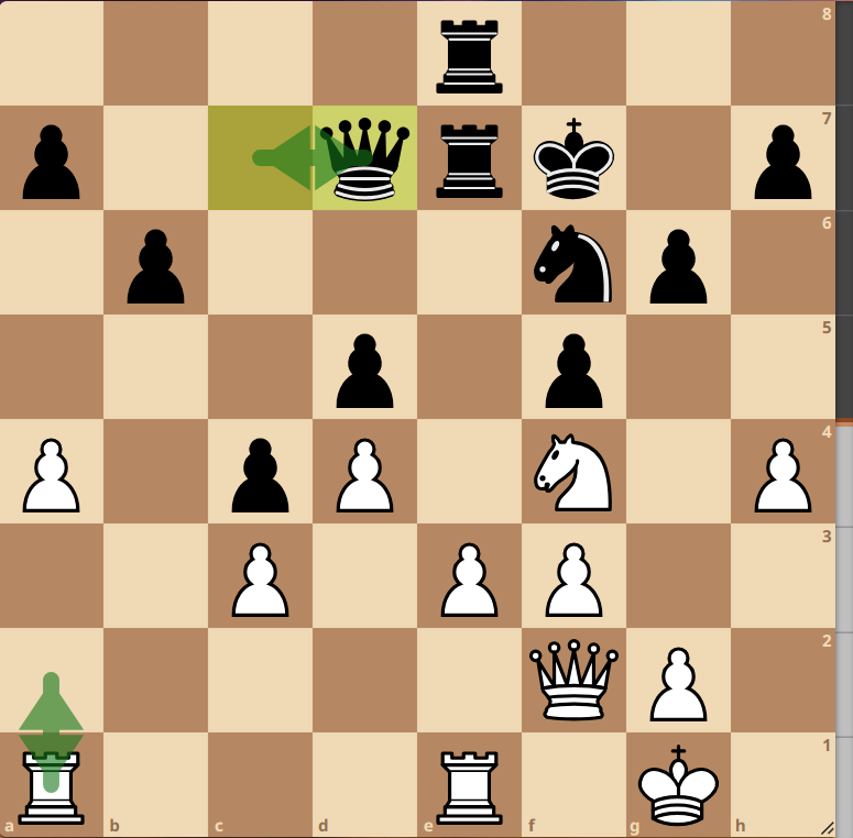 Brett 3 bei Alex Colovic, Zugwiederholung mit Ta2 Dc7, Ta1 Dd7=