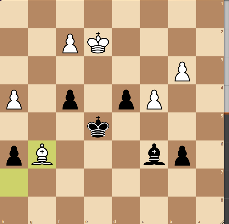 Brett 1 bei Nikola, Endstellung nach 44.Lg5+-