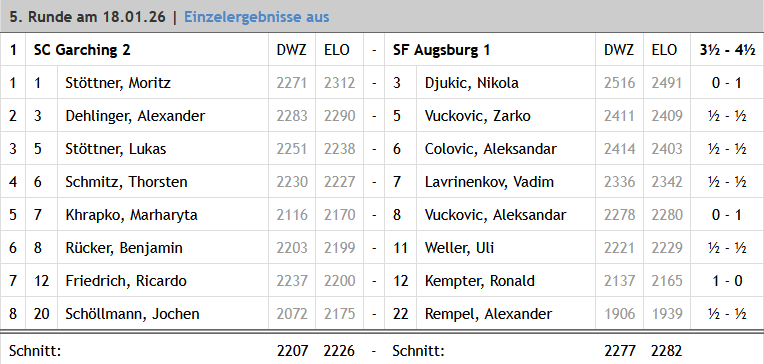 Sonntag, 18.01.2026, absolutes Spitzenspiel in der Oberliga zwischen den beiden verlustpunktfreien Mannschaften Garching 2 und Schachfreunde 1. Als Vorbereitung auf der Anreise wurde fleißig das legenäre Album „The Eminem Show“ gehört, das sich aus diesem Grund als roter Faden durch den Bericht zieht, also Curtains up für das Topspiel! Leider mussten wir kurzfristig umplanen und konnten nicht mit M.M. selbst aka Martin Michaelis antreten, trotzdem war unser Team aus Nikola, Zarko, Alex Colovic, Vadim, Alex Vuckovic, mir (Uli) , Ron und Alex Rempel natürlich sehr schlagkräftig!