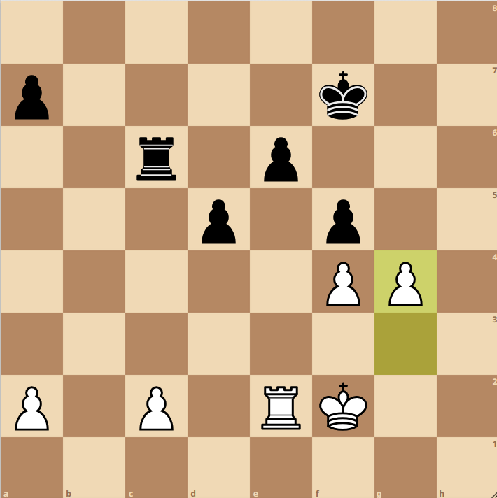 Bei mir fand sich über die Halbslawisch-Zugfolge eine QGA-Stellung (Queen’s Gambit Accepted bzw Angenommenes Damengambit) am Brett. Nach unpräzisem Spiel beider Seiten gelang ich in ein Endspiel mit Mehrbauern, aber dafür etwas unkoordinierten Leichtfiguren und leicht schwachen Bauern. Mein Gegner verpasste die Möglichkeit zu aktivem Gegenspiel, wodurch ich durch ebenso aktive Figuren den Mehrbauern verwerten konnte. 2-3