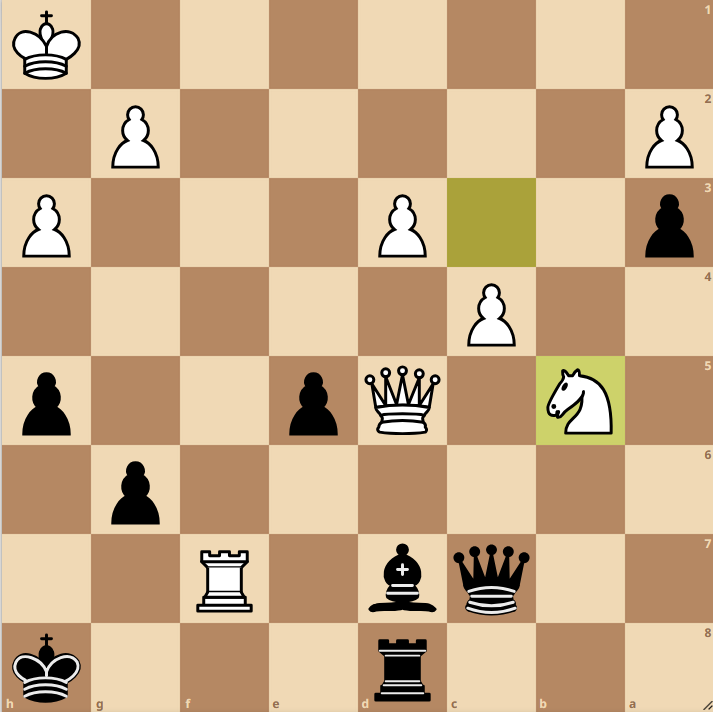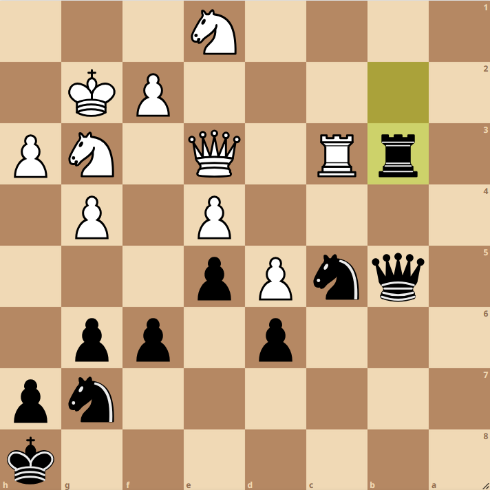 Um den Stichkampf für die DVM noch zu erreichen mussten nun zwei volle Punkte her, jedoch schien das an dem Punkt nur noch eine mathematische Möglichkeit zu sein – auch hier fing es mit der Caro-Kann-Verteidigung an, jedoch mit ganz anderem Charakter, da Alex hier das Läuferpaar für das Zentrum getauscht hat. Es folgten Abtäusche mit insgesamt 12 Schlagzügen hintereinander und die Kontrahenten fanden sich in einem Damenendspiel mit Läufer (Weiß) gegen Springer (Schwarz) und einigen leicht angreifbaren Bauern. Wenig später verschwanden auch die letzten Schwerfiguren und Alex Gegner schaffte es einen Bauern zu gewinnen. Obwohl Alex Stellung mir Chancenlos erschien, belehrte er mir seiner schachlichen Resilienz, einigten sich beide auf ein Remis, drohte nämlich eine vollständige Liquidierung des Bretts. 2-3