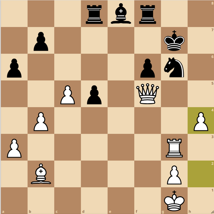 In einer Nebenvariante des Chigorin-Spaniers fanden sich Michael Steinberger und sein Gegner in einer typischen KID-Struktur (King’s Indian Defense bzw. Königsindische Verteidigung). Weiß konnte hier den typischen f7-f5-Hebel mit einem Bauern auf g4 verhindern, sodass Michael sein Spiel am Damenflügel suchte. Er schob seinen B-Bauern bis zur dritten Reihe, wonach der Damenflügel liquidierte. Nachdem die DVM-Qualifikation nicht mehr möglich war, war Michi in ausgeglichener Stellung mit einem fairen Unentschieden zufrieden.