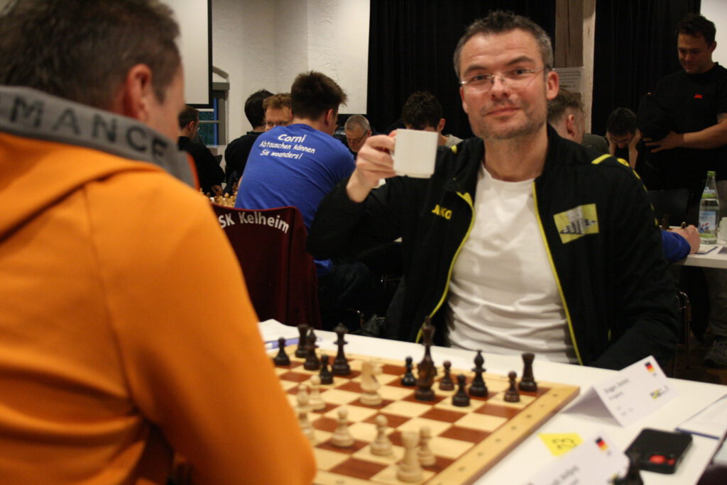 Vasko hatte es gleich in fünf Partien mit Gegnern zu tun, deren DWZ weit über seiner lag. Hier hatte er erwartungsgemäß zu kämpfen. Er verlor aber nie seine gute Laune, sorgte für guten Kuchen und Umsatz im Bistro, hat sicher viele Lehren gezogen und am Ende mit 2,5 Punkten ein versöhnliches Ergebnis erzielt. Kevin attestierte ihm in der fünften Runde eine „scharfe Klinge“.